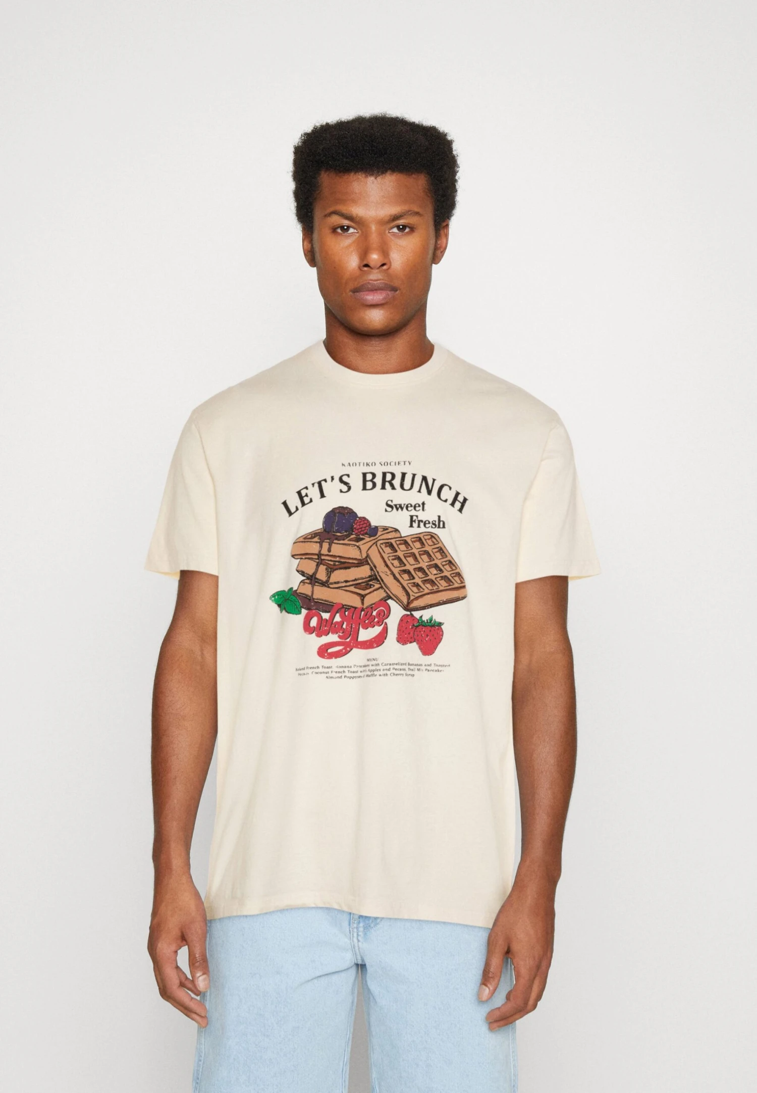Kaotiko Washed Let´S Brunch Unisex – Print T-Shirt – Ivory